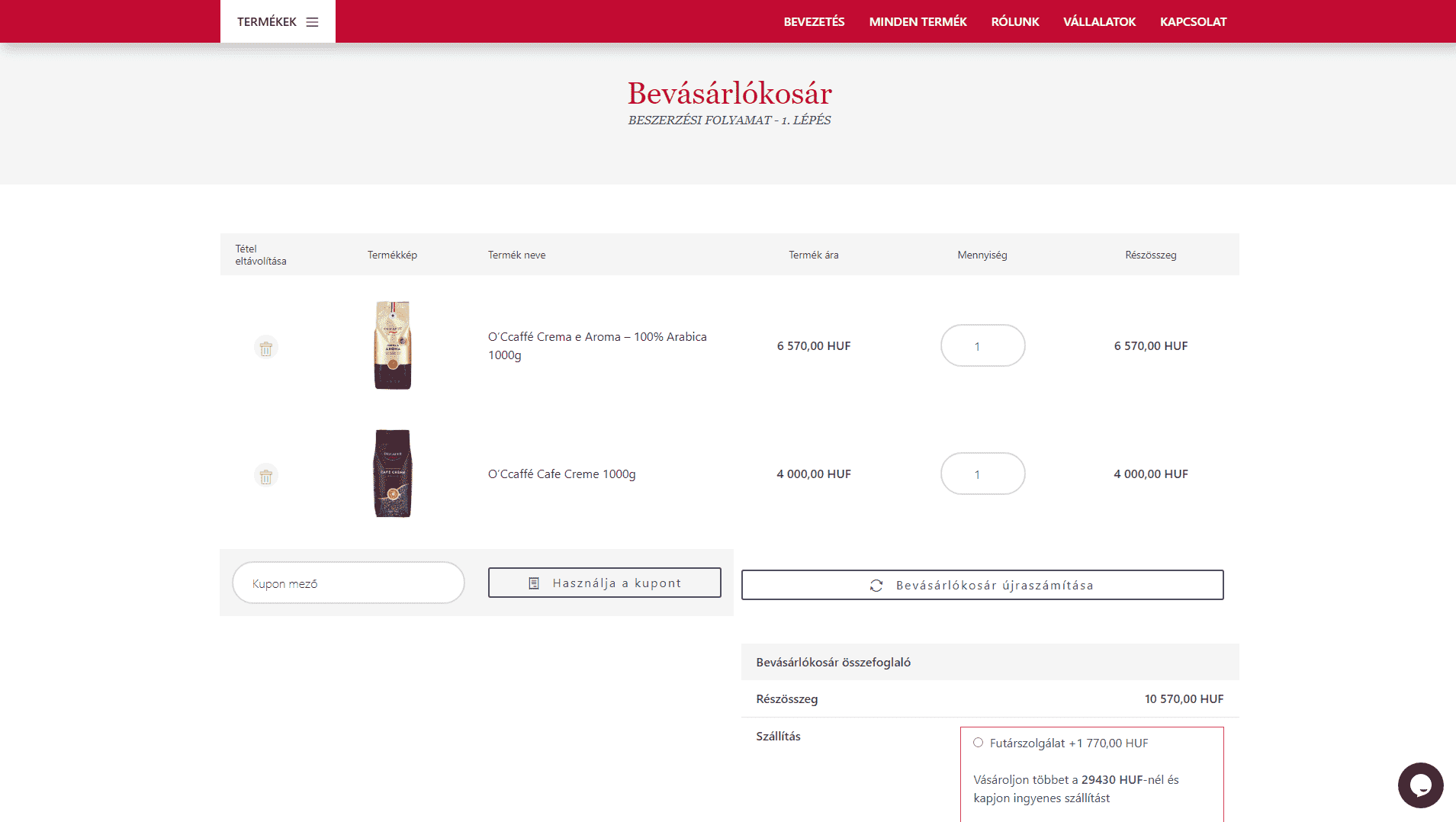 Occaffe.hu je eshop, ktorý predáva značkovú talianskú kávu Occaffe.