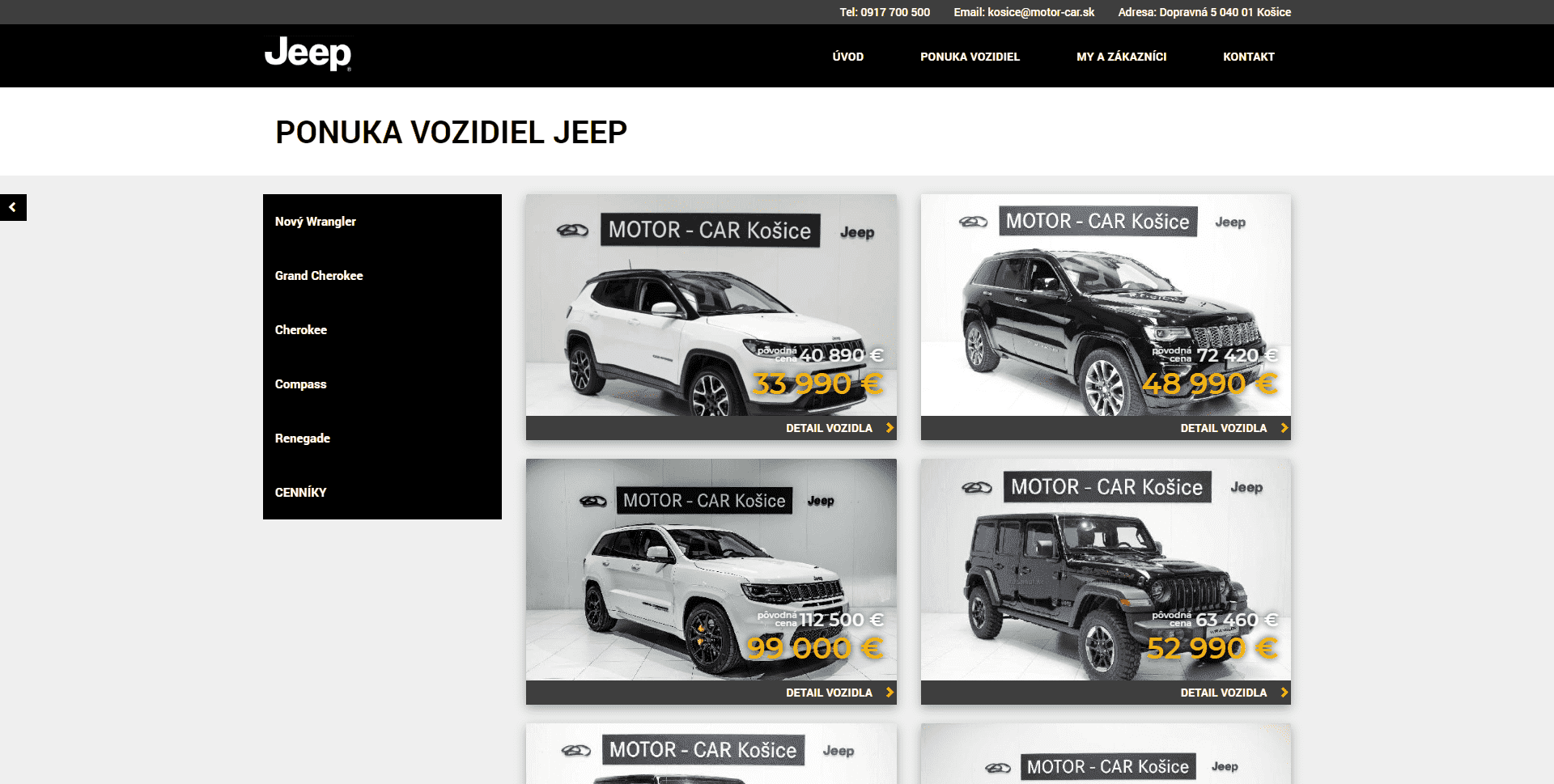 Katalógový web pre Košický autosalón Jeep - MotorCars Košice